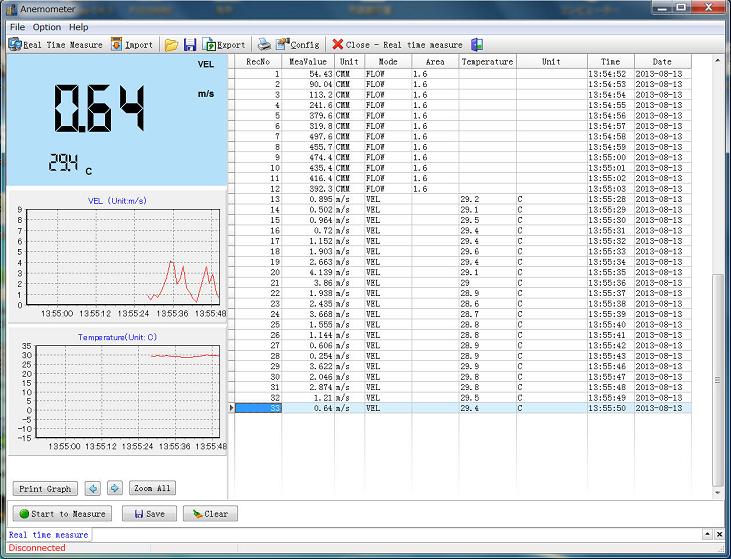 CMM規格: 風速単位 測定単位M/s 測定範囲0.3-45 分解能0.001 精度±3% ±0.1dgts 測定単位km/hr 測定範囲1.0?140 分解能0.001 精度±3%±0.4dgts 風量単位 測定範囲:0-999900m3/min 分解能:0.001?100 エリア面積設定:0.001-9999m2 データロガー機能付きです。最大500のメモリを記録可能です。風速レベル を自動記録します。(手動設定も可能です)記録間隔時間の設定可能です。 記録されたデータは本体で確認することが可能です。付属のUSBケーブル でパソコンにダウンロードできます。リアルタイムの風速(風速際に温度も記 録)、風量の測定記録がパソコンへ、パソコン記録されたデータを簡単に Excelファイルに変換することが可能です。 インストール、データロガー等すべての操作は日本語取説付、PCソフトは英 語となりますが簡単に使用することが可能です。操作につき、電話にてサポー トを致します。 パソコンOS:WindowsXP WindowsVista Windows7 Windows8 Windows10が使用可能, 確認済み。Windows11 の場合お問い合 わせください。もし分からなければ、ご連絡下さい。 温度計 0-45℃ 分解能0.1 精度±1℃ 風速、風量測定、高精度の温度測定。 平均、現在、最大、最小値の測定、データ固定機能(HOLD) 三脚に取り付けて使用する事ができます。 電源自動オフ バックライト付き 電源:単4乾電池4本、電池付属 ビューフォート風力階級表示 本体サイズ/重量:145x72x35mm/248g電池込み 羽根サイズ/重量:172x65x29mm/38g 使用温度:0-50℃/80%RH以下 付属品:本体保護ゴム付、日本語取説、電池、CD、USBケーブル、ハードケース メーカー保証3ヶ月 ●商品は輸入品のため多少の傷などがある場合がございます。 7848円税込み(メーカ3ヶ月保証)見積 注文 |
